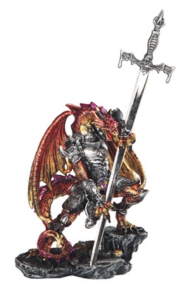 Red/Gold Dragon with Armor & Sword 5" high